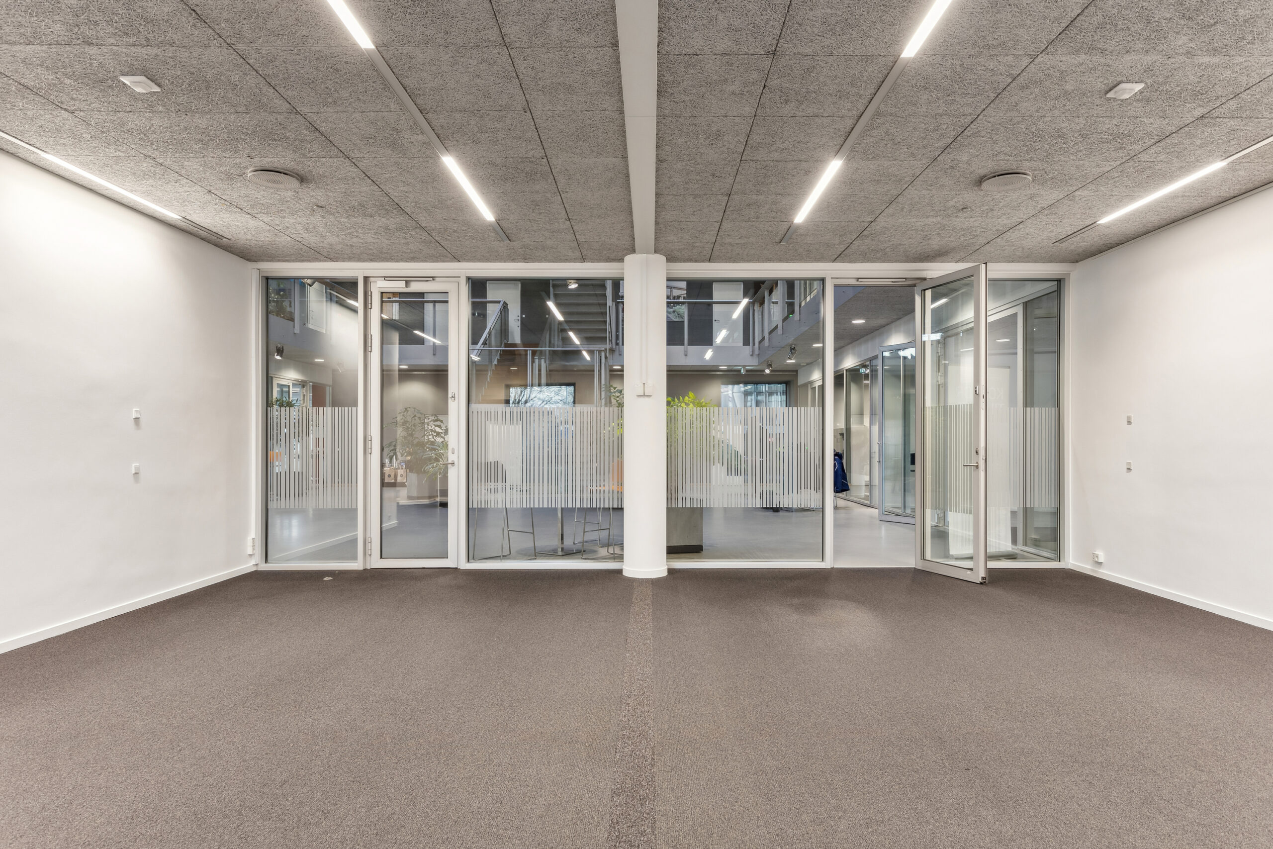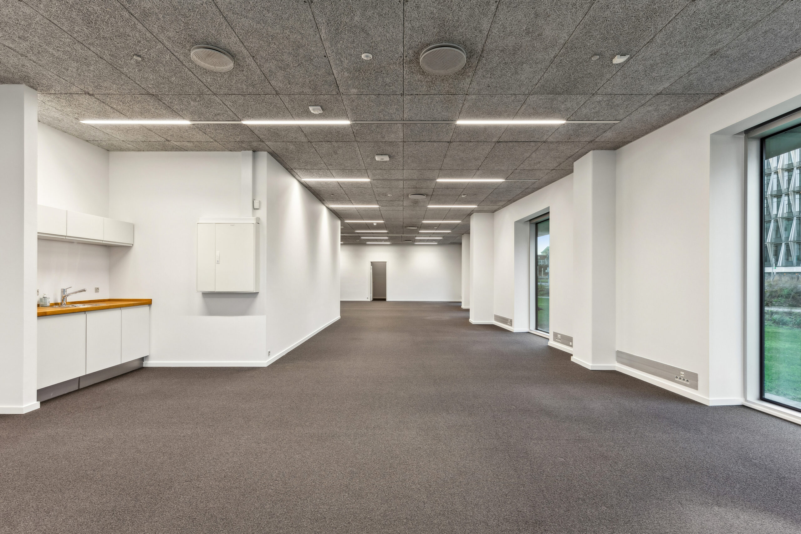 Alle lejere får adgang til husets hyggelige kantine i stueetagen med udsigt over Kolding Å. Her findes også en stor fælles terrasse, som er et besøg værd. Alle lejere har adgang til ekstraordinære fællesarealer som moderne mødelokaler, en imponerende konferencesal, cafemiljø, tekøkken og meget andet. Nævneværdigt er også de gode parkerings- og gæsteparkeringsforhold. Parkeringspladser kan lejes for blot 500 kr./mdr., mens hele 15 gæsteparkeringspladser står til rådighed for evt. samarbejdspartnere, kunder eller lign.